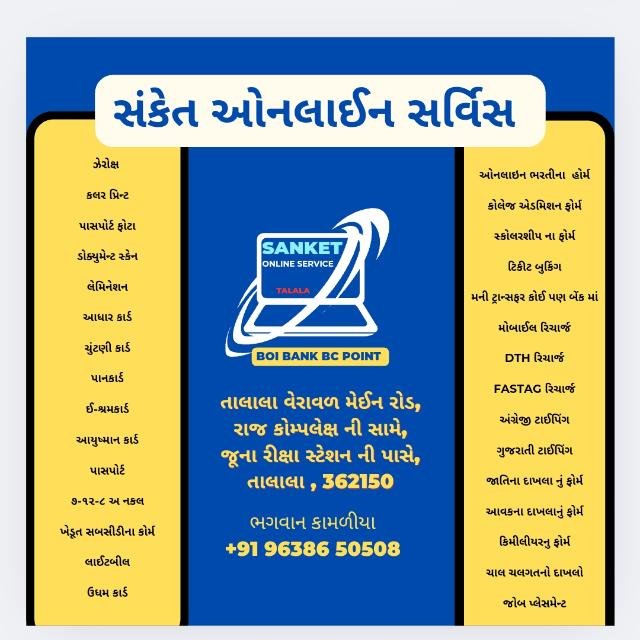 🌐🖥️ સંકેત ઓનલાઇન સર્વિસ, એન્ડ જોબ પ્લસમેન્ટ. તાલાલા 🖥️🌐